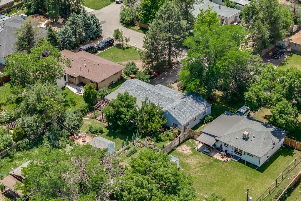 Welcome to this charming and well-maintained ranch-style home set on a beautifully landscaped lot nestled in a quiet neighborhood in northeast Lakewood. This spacious three-bedroom, one-bath home has been lovingly cared for by the same owner since 1977 and offers a wonderful blend of comfort, character, and opportunity. Inside, you'll find light-filled living spaces, a bright kitchen with updated stainless steel appliances including a new oven (2024) and fridge (2017), and a new gas boiler heating system (2024). The layout flows easily from room to room, with natural light, neutral finishes, and a cozy atmosphere throughout. The backyard is a showstopper you have to see to believe. Set on a beautifully landscaped lot, the outdoor areas are a private oasis featuring a covered patio, a pergola-shaded sitting area, a flagstone firepit, and vibrant perennial flower beds. Gardeners will fall in love with the fenced vegetable garden, raised beds throughout, and even a mature apple tree. A quality storage shed with windows adds charm and functionality, and the mature trees provide cooling shade and privacy. The home had a new roof and siding installed in 2017 and includes room A/C units to keep you comfortable in the summer. Located within walking distance to Jefferson High School and Lumberg Elementary, this property is also within 15 minutes of Crown Hill Park, Sloan’s Lake, downtown Denver, and the mountains—blending everyday convenience with the best of Colorado living. Over time, the home has experienced some settling, resulting in visible interior wall cracking in some areas. This is likely due to movement in the concrete block foundation, and the home is priced accordingly to reflect this. With its beautiful setting, solid updates, and unbeatable location, this home is a rare opportunity for buyers looking to build equity while enjoying the serenity of an established garden retreat.